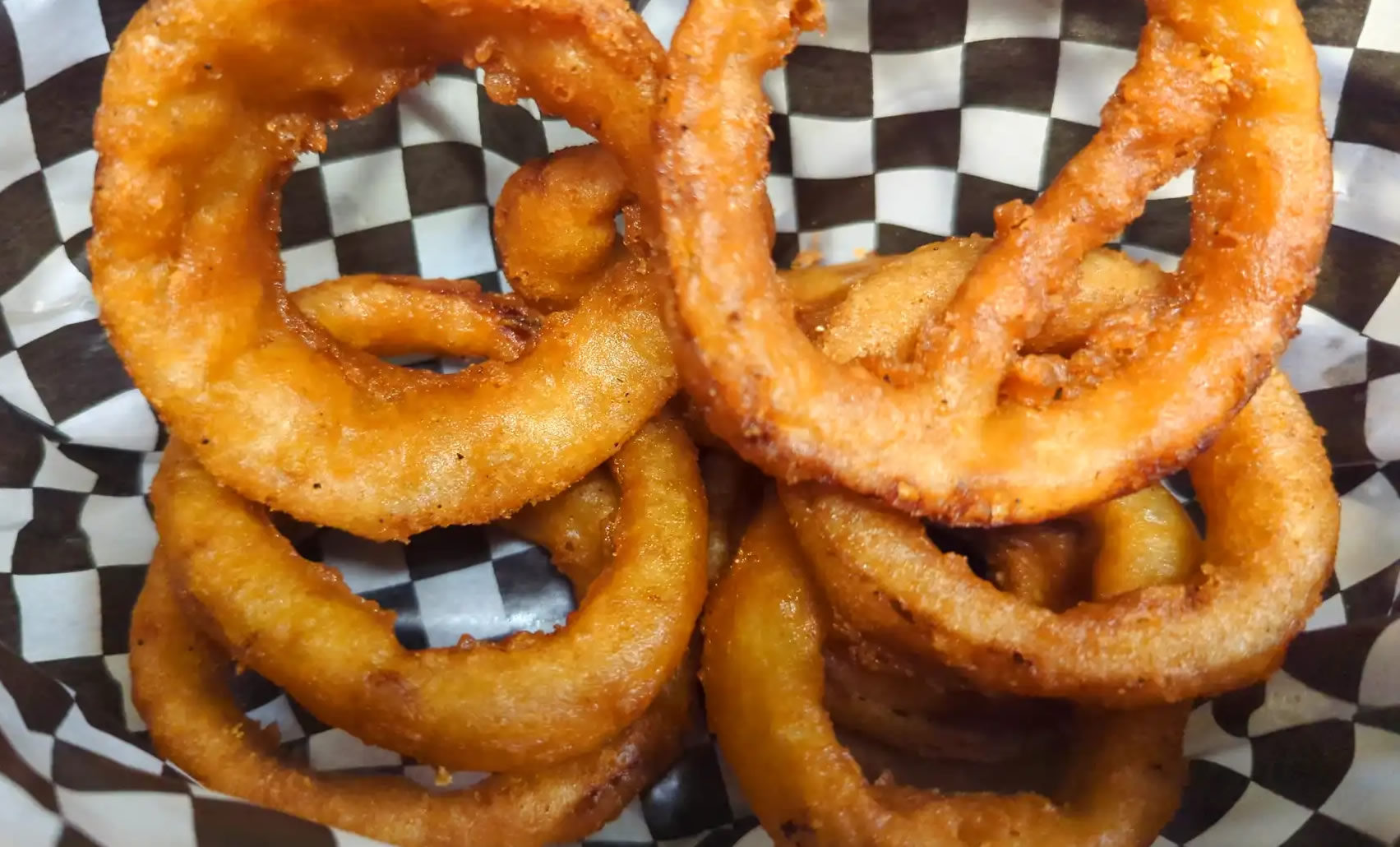 Crispy golden-fried onion rings, perfectly seasoned for a savory crunch.