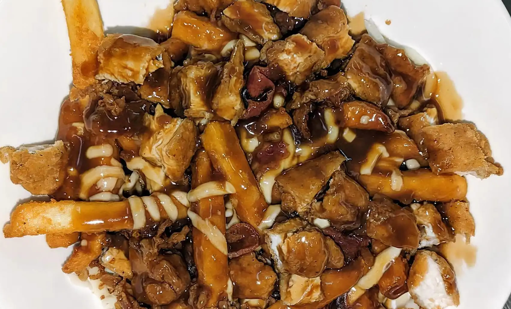 Classic Poutine, a generous portion of fries topped with cheese & home-made beef gravy.